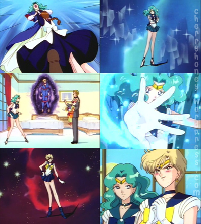 Sin dudarlo Michiru se convierte en Sailor Neptune y pese a las amenazas del enemigo acerca de que podrían acabar con Haruka y esparcir una sustancia maligna que acabaría con la humanidad al provocar que las sombras se vuelvan contra sus dueños, decide atacarlos, provocando con ello la liberación de Haruka quien de inmediato se transforma y uniendo sus poderes junto a Michiru acaban con el títere quién era en realidad el responsable de todo. La aparición de este personaje les hace caer en la cuenta de que un nuevo enemigo estaba acechando la tierra pese a lo cual deciden no intervenir ya que confían en sus otras compañeras a quien pese a todo extrañan profundamente.