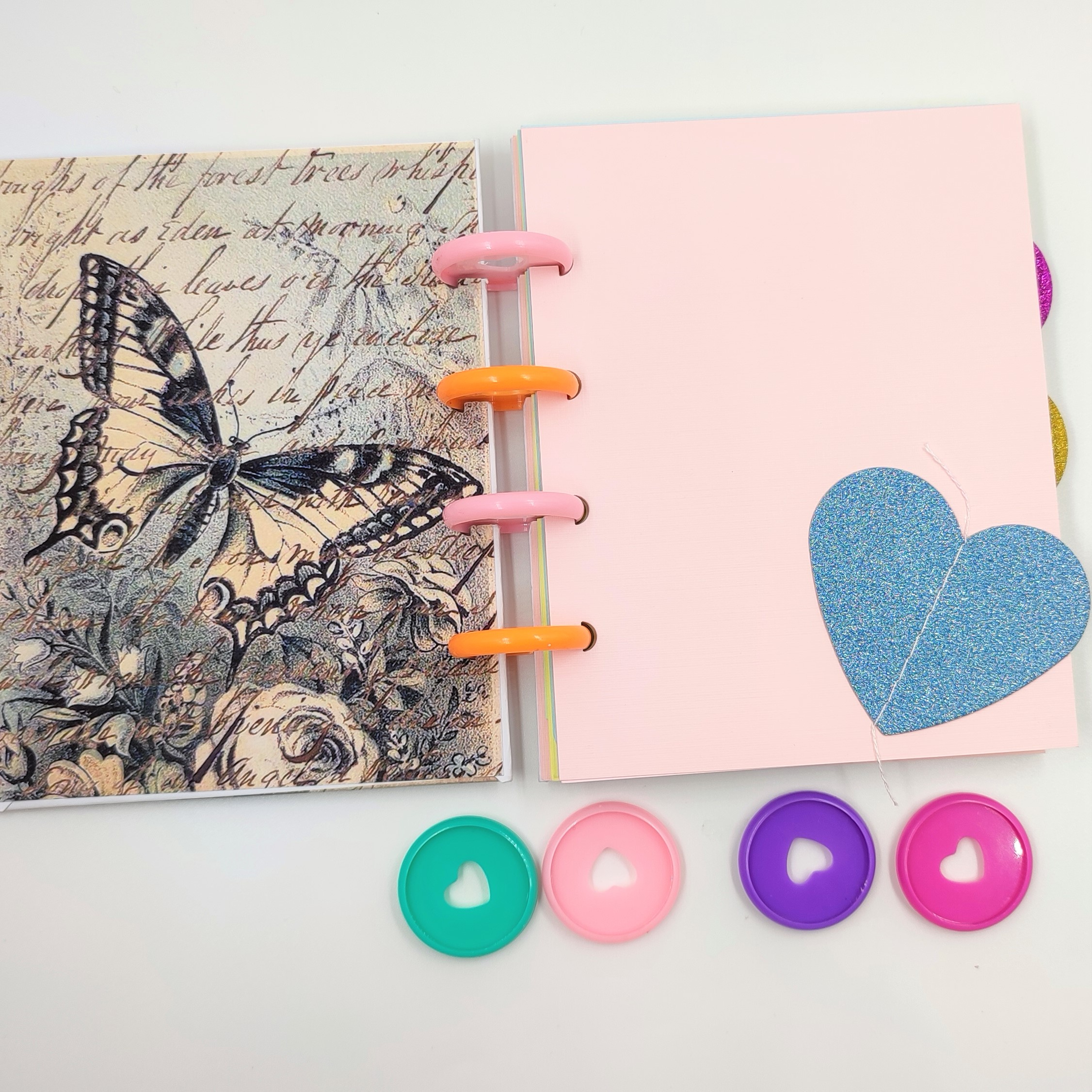 Existen diversos colores, tamaños y diseños de los discos, lo que lo hace muy colorido y versátil. He visto que este sistema es utilizado bastante en el scrapbook en la fabricación de libros de recortes, calendarios y álbumes fotográficos.