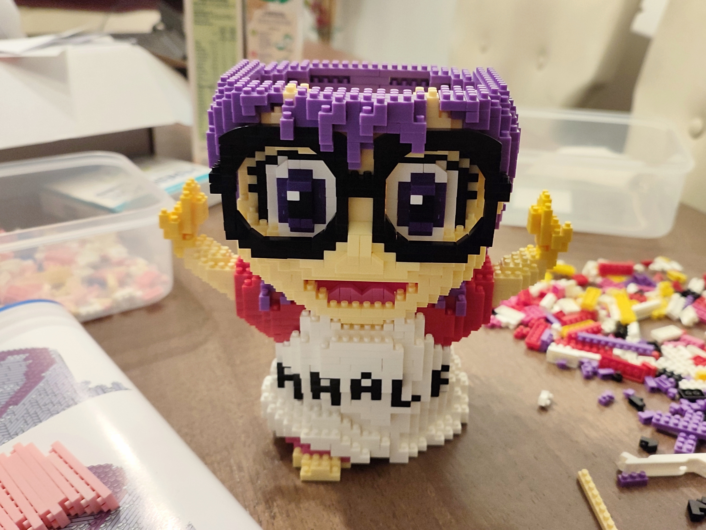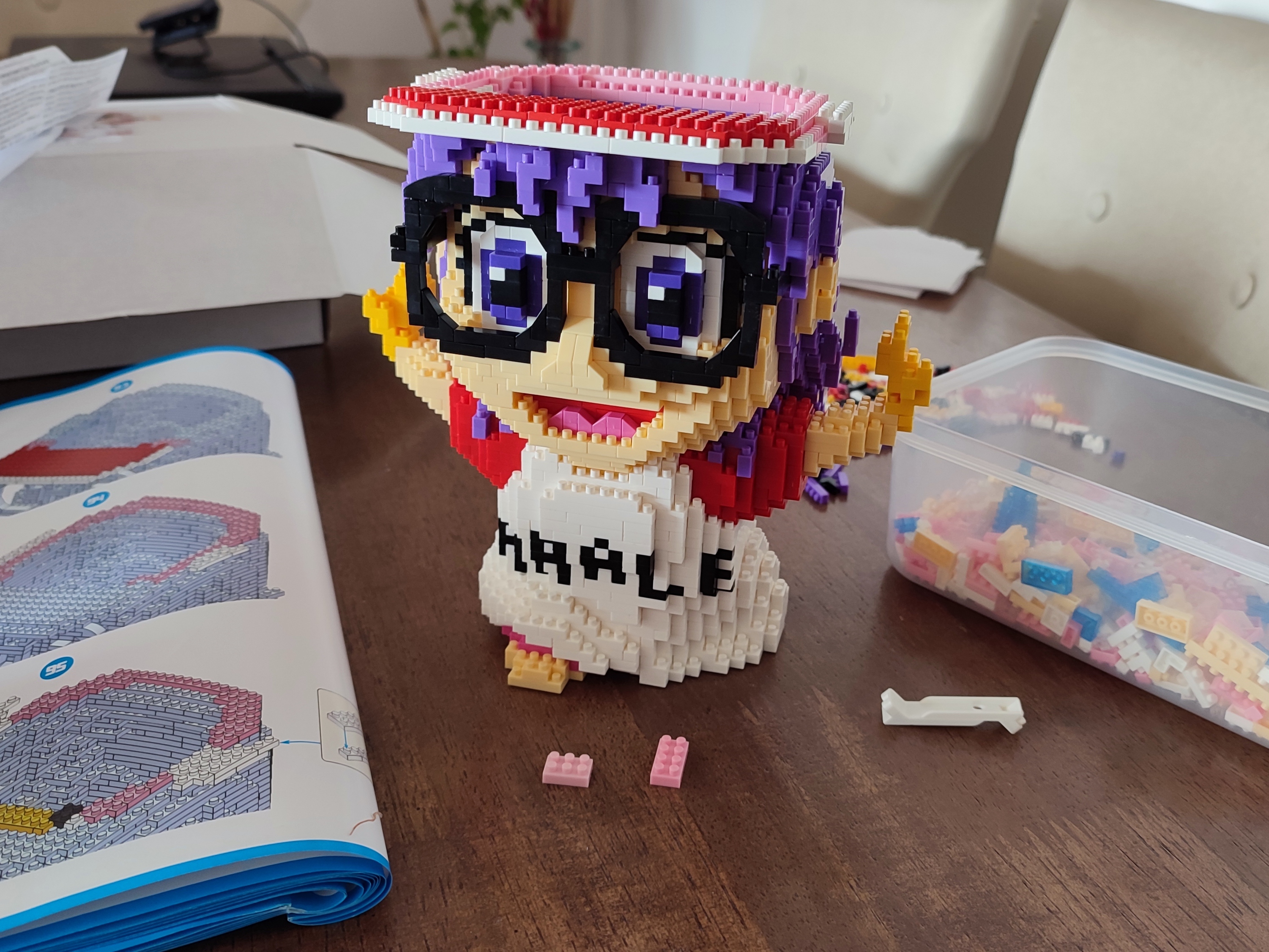 Por accidente conocí esta tienda @oh_myblock cuando recién se estaba armando en la Otakupaloza en mi comuna. Una de las figuras armables tipo lego mas bellas fueron las de Arale Norimaki de Dr. Slump y algunas de Pókemon, por lo que nos animamos con Arale la cual consta de 3090 piezas de 5mm (#°Д°) si! todo un desafío!.