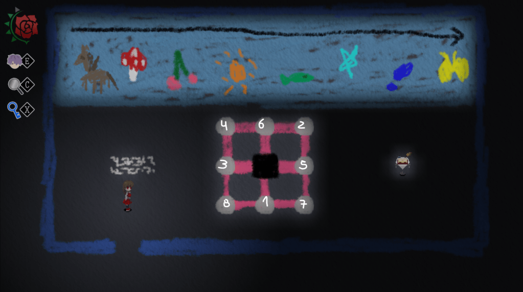 En el caso de que no podamos continuar con Garry al salir de la caja de juguetes encontraremos a Mary que juega al “Me quiere, no me quiere” y sale de la habitación debemos ir directamente al cuadro de “Mundo de ???” en la galería.