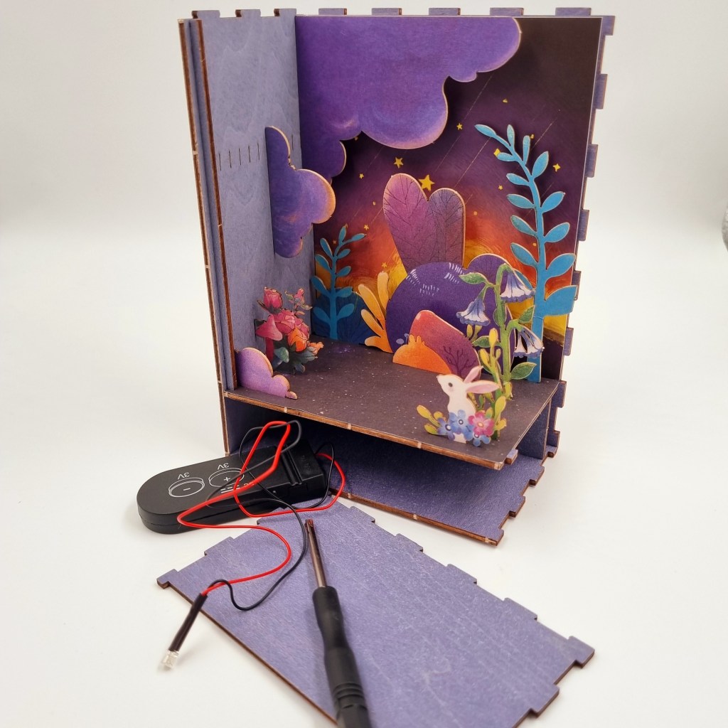 Ya con mas forma, es el turno de insertar la pequeña batería de la pequeña luz el cual va escondido en la parte trasera del cajón el cual debemos insertar las pilas, finalmente debemos cortar y pegar los demás detalles incluidos.