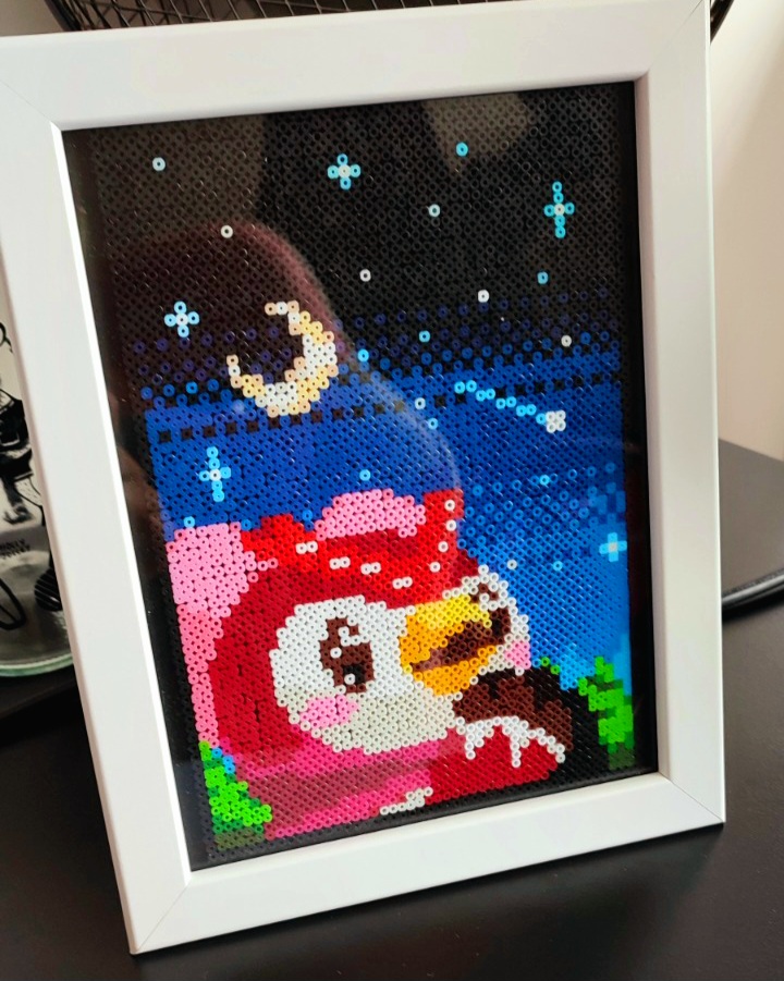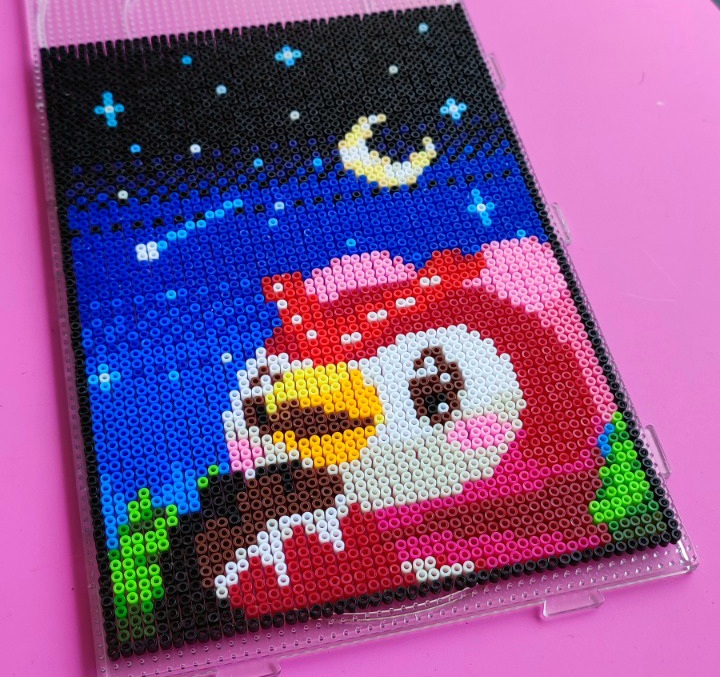 Hermoso cuadro hecho de hama beads de 2.4, el cual representa una noche de estrellas fugaces, en donde Stella o Celeste pide un deseo a las estrellas.