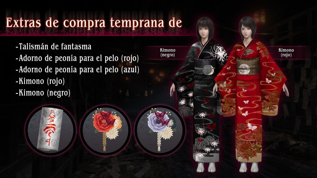 Para la compra temprana incluirá un talismán de fantasma, adornos para el pelo y hermosos e infaltables kimonos para Mio y Mayu.